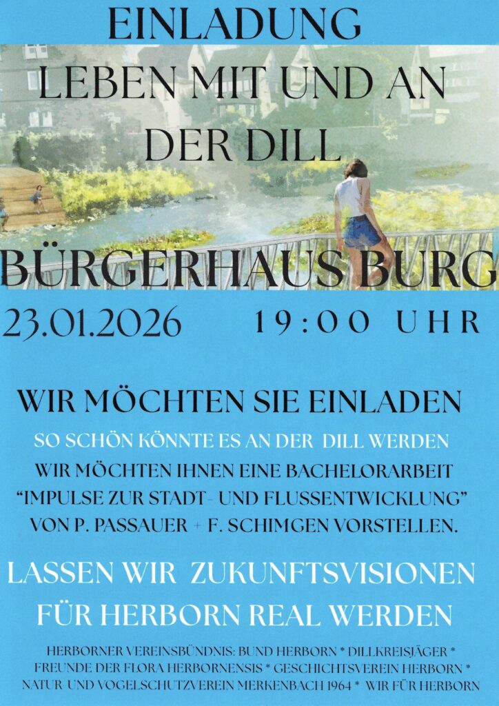 Herborn bietet viele sehens- und erlebenswerte Orte, sie ist eine einladende, offene und attraktive Stadt. Aber fehlt da nicht etwas? Die Dill ist im Erleben der Stadt kaum vorhanden. Eingebettet in Beton werden die Chancen nicht genutzt, die ein Leben mit und an dem Fluss bieten könnten.